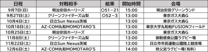 9月27日(土)、東京ガス大森グラウンドで行われたクリーンファイターズ山梨戦は 52対3(前半33対3、後半19対0) で勝利いたしました。