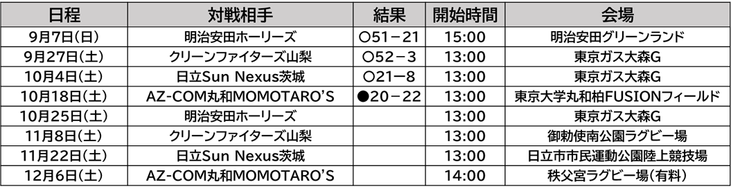 次戦は、10月25日(土)13時~東京ガス大森グラウンドで、VS 明治安田ホーリーズを予定しております。